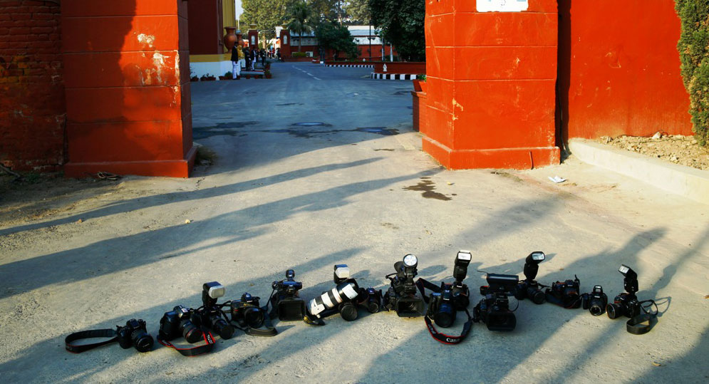 प्रवेश नदिएपछि फोटो पत्रकारहरुले शीतल निवासको गेटमा क्यामेरा राखेर विरोध जनाएका थिए। सरकारी सञ्चारमाध्यमका पत्रकारहरुलाई मात्र सपथमा प्रवेश दिइएको थियो।