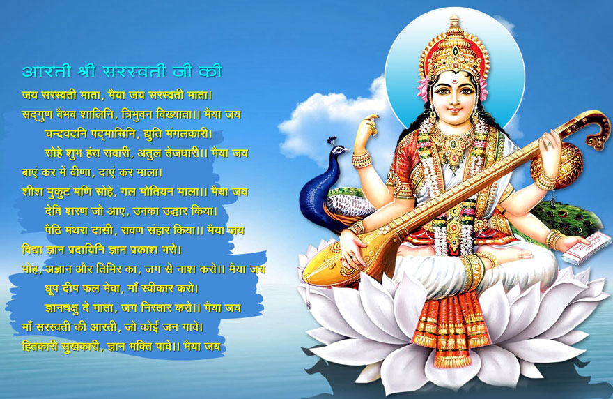 चन्द्रमाजस्तो गोरो वर्ण भएकी तथा हातमा वीणा र पुस्तक लिएकी विद्याकी देवी सरस्वतीलाई भक्तजनले भारती, शारदा, हंसवाहिनी, जगन्माता, वागीश्वरी, कौमारी, वरदायिनी, बुद्धिधात्री, ब्रह्मचारिणी, चन्द्रघण्टा र भुवनेश्वरीजस्ता नामले पुकार्छन् ।