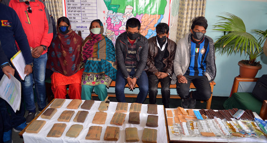 रक्सौलबाट खरिद गरिएको सुईजन्य लागुऔषध नेपाल भित्र्याउने क्रममा सीमा क्षेत्रबाट पक्राउ परेका भक्तपुर अनन्तलिंगेश्वर नगरपालिका–१० निवासी रोहण खड्का र हेटौँडा उपमहानगरपालिका–१३ निवासी दीपेन्द्र खत्रीलाई सार्वजनिक गर्दै उपरीक्षक रेग्मीले पक्राउ परेका पाँचै जनाविरुद्ध लागुऔषध मुद्दा चलाउने तयारी भएको बताउनुभयो ।