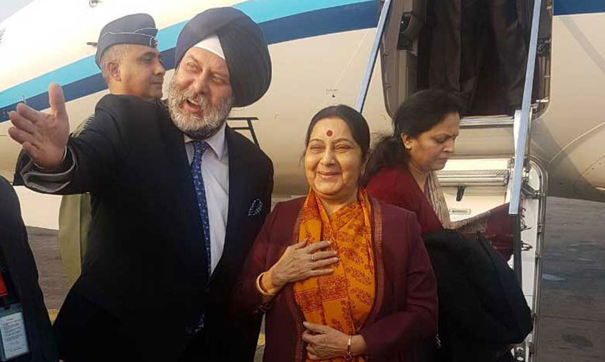 काठमाडौँ, १८ माघ । भारतका बाह्य मामिलामन्त्री सुष्मा स्वराज नेपालको दुईदिने भ्रमणका क्रममा केही बेरअघि विशेष विमानबाट यहाँ आइपुग्नुभएको छ ।