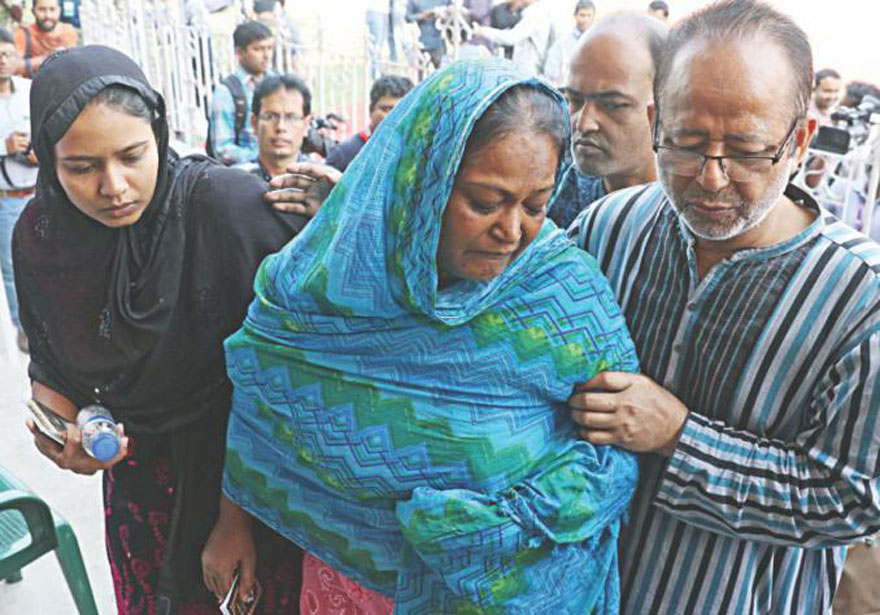 रंगशालामा आफ्नो एक्ली छोरीको शव पर्खेर बसेकी राजेफा एउटा सानो किताब हातमा लिएर प्राथना गर्ने प्रयासमा थिइन्, तर आँशुले भरिएका उनका आँखाले उनलाई रोकिरहेको थियो । पति अनिसुर रसिद उनलाई सम्झाउने प्रयास गर्दै थिए ।
