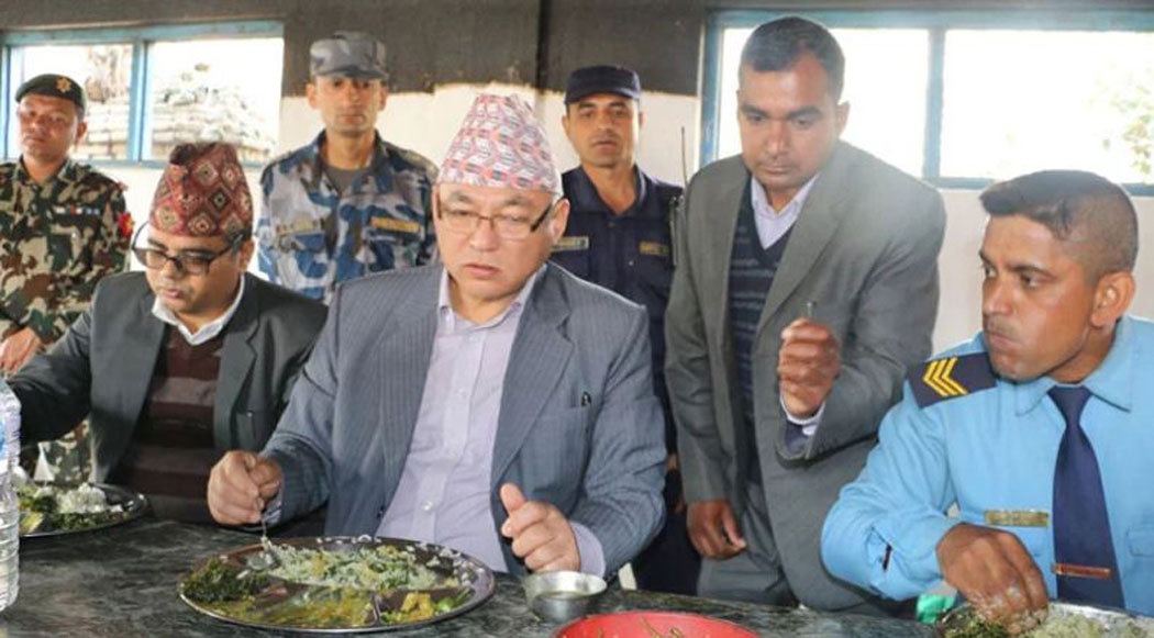काठमाडौँ, ७ चैत । गृहमन्त्री रामबहादुर थापा ‘बादल’ले आज प्रहरीको मेसमा बसेर जवानसँगै खाना खानुभएको छ ।