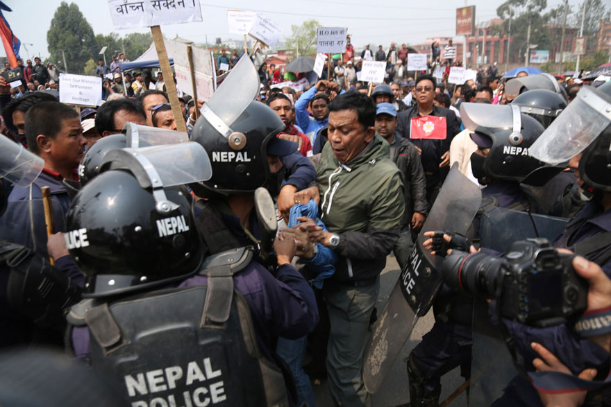 काठमाडौँ, १४ चैत । उपत्यकाव्यापी सडक विस्तार पीडित संघर्ष समितिले संविधान, कानून र नेपालले हस्ताक्षर गरेको महासन्धि विपरीत सडक विस्तार रोक्न माग गर्दै प्रदर्शन गरेका छन् ।