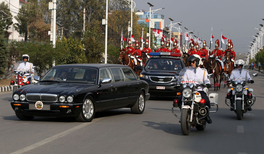 संसद् बैठकस्थल अन्तर्राष्ट्रिय सम्मेलन केन्द्रमा राष्ट्रपति बग्गीको कारगेडसहित आउनुहुँदा प्रधानमन्त्री ओली, प्रतिनिधिसभाका सभामुख कृष्णबहादुर महरा, राष्ट्रियसभाका अध्यक्ष गणेश तिमल्सिनालगायतले स्वागत गर्नुभएको थियो । नेपाली सेनाले राष्ट्रपतिको सम्मानमा सलामी अर्पण गरेको थियो ।