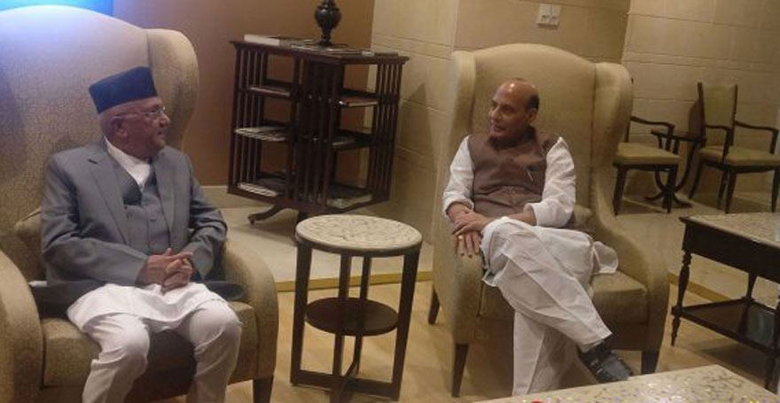 काठमाडौं, २३ चैत । प्रधानमन्त्री केपी शर्मा ओली राजकीय भ्रमणका क्रममा आज बिहान पौने ११ बजे नयाँ दिल्लीस्थित इन्दिरा गान्धी अन्तर्राष्ट्रिय विमानस्थलमा ओर्लेका छन् । ओलीलाई भारतका गृहमन्त्री एवं भारतीय जनता पार्टीका पूर्व अध्यक्ष राजनाथ सिंहले स्वागत गरेका छन् । यसअघि अर्थराज्यमन्त्री शिवप्रताप शुक्ललाई खटाएको भारतले आज बिहान मात्र सिंहलाई एयरपोर्ट पठाउने निर्णय गरेको बुझिएको छ ।
