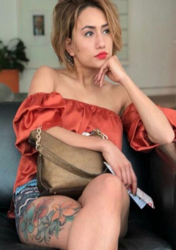फेसबुकमा सेयर गरेका तस्बिरहरूमा उनको दायाँ तिघ्रा भरिने गरी खोपेको फूलको बुट्टा देखिन सकिन्छ जुन अहिले निकै चर्चाको विषय बनेको छ।