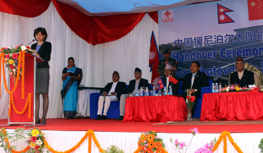 चिनियाँ राजदूत यु होङले विकास र समृद्धिका लागि दुई देशबीच लामो समयदेखि समन्वयात्मक सहकार्य रहँदै आएको र त्यसको पछिल्लो उदाहरण सौर्य ऊर्जा महत्वपूर्ण परियोजना भएको उल्लेख गर्नुभयो । चीन विश्व अर्थतन्त्रको शक्तिशाली मुलुक भएको र पर्यटनको हिसाबले पनि अथाह सम्भावना रहेको भन्दै उहाँले नेपालको आर्थिक विकासका लागि नयाँ सम्भावनाका क्षेत्रमा लगानी अभिवृद्धि गर्ने योजना रहेको सुनाउनुभयो ।