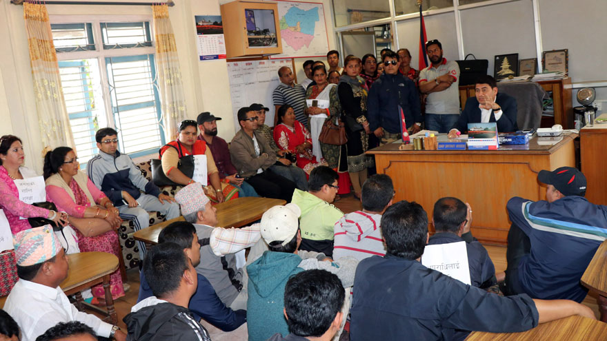 भक्तपुर, १९ वैशाख । मध्यपुरथिमि नगरपालिकाका प्रमुख मदनसुन्दर श्रेष्ठलाई गत ८ गते शनिबार आक्रमण गर्ने आक्रमणकारीलाई पक्राउ गर्न माग गर्दै आज जिल्ला प्रशासन कार्यालय भक्तपुरमा धर्ना दिँदै घेराउ गरिएको छ ।