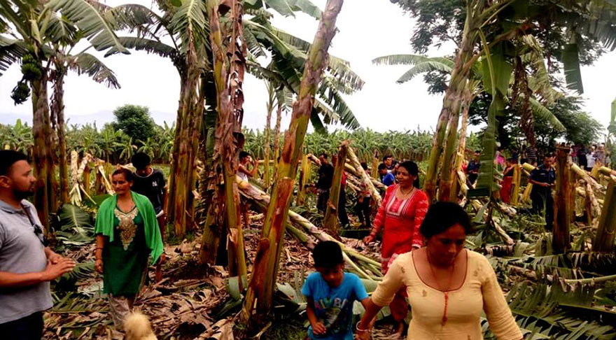 यस्तै, कोपिला दाहालको एक हजार २००, गोपी लामिछानेको २००, गोविन्द दाहालको ५०, लिला पंगेनीको १५०, पूर्णबहादुर खड्काको ९७ र भूमिनन्द दवाडीको १२ बोट केरा नष्ट भएको संघले जनाएको छ ।