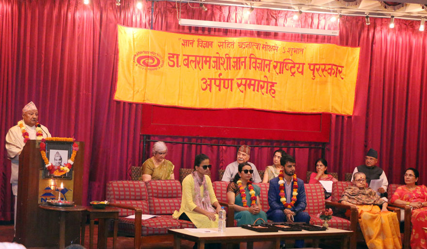 काठमाडौँ, १४ असार । भौतिकशास्त्रका प्रा. डा. बलराम जोशीको स्मृतिमा स्थापित ‘डा बलराम जोशी सुयोग्य शिक्षक पुरस्कार’ प्रा डा वासुदेव त्रिपाठीलाई अर्पण गरिएको छ ।