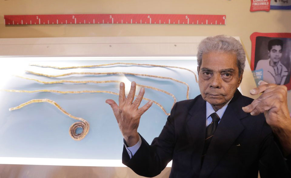 काठमाडौँ, २९ असार । ‘तिनीहरूलाई बढाउन वर्षौँ लागेको थियो तर काट्नको लागि दुई मिनेट पनि लागेन ।’ बुधबार एउटा हातमा सबैभन्दा लामो नङ्गको लागि गिनिज बुक अफ वल्र्ड रेकर्डस्मा नाम लेखाएका भारतको पुणे निबासी श्रीधर चिल्ललले अन्ततः आफ्ना नङ्गहरु काटे ।