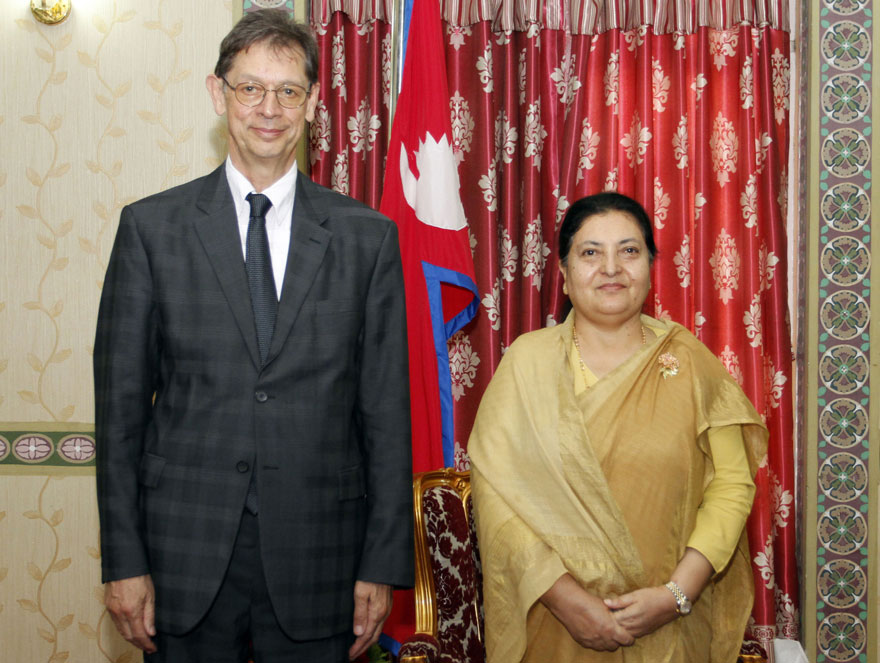 काठमाडौँ, २९ असार । राष्ट्रपति विद्यादेवी भण्डारीसँग आफ्नो अढाई वर्षे कार्यकाल पूरा गरी सेवाबाट निवृत्त हुन लाग्नुभएका नेपालका लागि फ्रान्सका राजदूत इभ्स कार्मोनाले आज राष्ट्रपति कार्यालयमा बिदाइ भेट गर्नुभयो ।