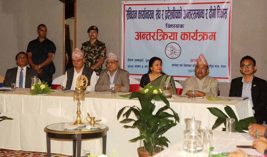 जनसंख्या तथा विकासका लागि सांसदहरुको राष्ट्रिय मञ्चले आज यहाँ आयोजना गरेको ‘संविधान कार्यान्वयन संघ र प्रदेशबीचको अन्तरसम्बन्ध र दिगो विकास’ सम्बन्धी अन्तक्र्रियामा उहाँले संविधान कार्यान्वयनका लागि संघीय संसद्ले धेरै कानूनहरु बनाउनुपर्ने दायित्व रहेको बताउनुभयो ।