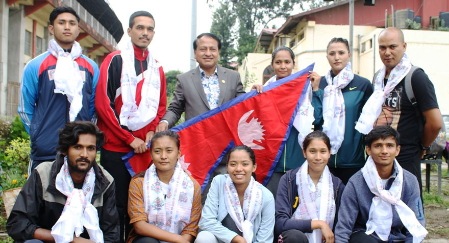 प्रस्थान गर्ने पुरुष टोलीमा मविन्द्र भण्डारी (कप्तान), अजय कुशवाहा, निश्चल महर्जन र अनिश बस्नेत छन् । त्यस्तै अनुषा मल्लको कप्तानीमा रहेको महिला टोलीमा भावना लामा, श्रेया खड्का र एलिना गुरुङ छिन् । अफिसियलमा विकास शाही र सदिना श्रेष्ठ छन् ।