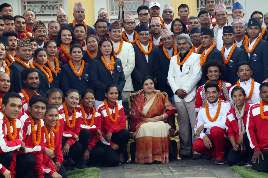 उक्त प्रतियोगितामा भाग लिने नेपाली खेलाडीलाई राष्ट्रपति कार्यालयमा आज आयोजित एक विशेष कार्यक्रममा शुभकामना व्यक्त गर्दै राष्ट्रपतिले खेलकूदको मर्म र भावनाअनुरुप प्रतिस्पर्धामा खरो उत्रन आग्रह गर्नुभयो ।