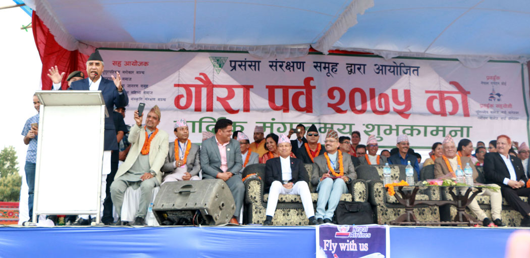 प्रशंसा संरक्षण समूहले आज यहाँ आयोजना गरेको गौरा पर्व विशेष कार्यक्रममा पूर्वप्रधानमन्त्री एवं नेपाली काङ्ग्रेसका सभापति शेरबहादुर देउवाले सुदूरपश्चिम संस्कृतिमा धनी रहेको बताउनुभयो ।