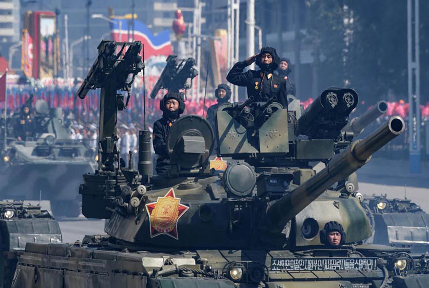 प्योङयाङ, २४ भदौ । उत्तर कोरिया स्थापनाको ७० औं वार्षिकोत्सव समारोहका अवसरमा आइतबार राजधानी प्योङयाङमा आयोजित परेडमा अन्तर्राष्ट्रिय प्रतिबन्धको मुख्य तारो मानिएका अन्तरमहादेशीय ब्यालेस्टिक क्षेप्यास्त्र बेगर नै सैनिक ट्यान्क र तोप सहित हजारौं सैनिकले मार्चपास गरेका छन् ।