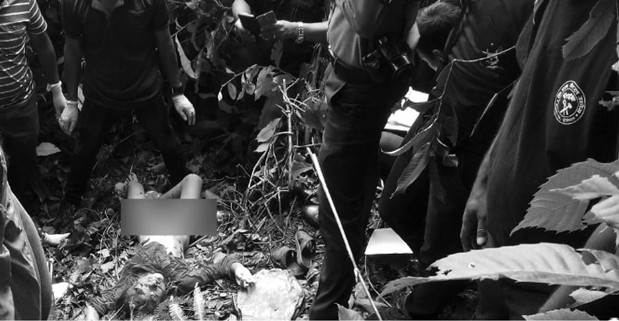 लगत्तै घाँटीमा समातेर झाडिमा फालिदिए । त्यति गर्दा बेहोस् बनेकी बालिकालाई उनले करणी गरे र थाहा पाउने डरले ढुंगाले टाउकोमा हानेर हत्या गरे ।