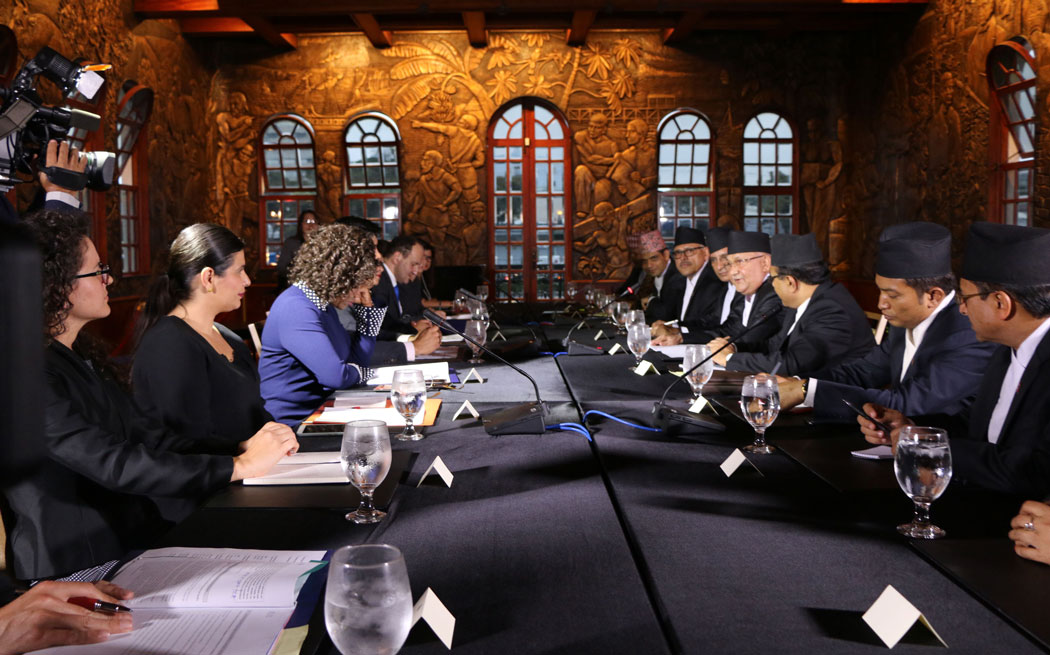प्रधानमन्त्री ओलीले दुई नेतृत्वबीच नेपालको प्राथमिकता, समृद्ध नेपाल सुखी नेपालीको लक्ष्य, वातावरणीय परिवर्तन, महिला सशक्तीकरण, प्रजातन्त्र, सुशासन, निःशस्त्रीकरण आदि विषयमा पनि छलफल भएको जानकारी दिए ।