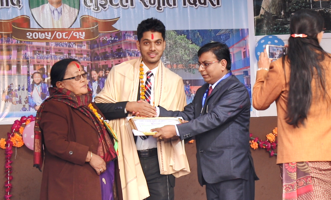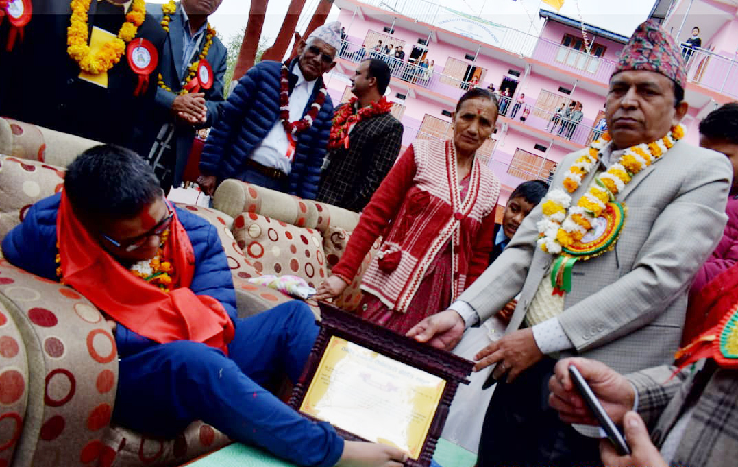 कार्यक्रममा साहित्यकार घिमिरेलाई प्रमुख जिल्ला अधिकारी सीताराम कार्कीले दोसल्ला र प्रमाणपत्र तथा विद्यालयका अध्यक्ष चिन्तामणि लुइटेलले नगद २५ हजार प्रदान गरी सम्मानित गरे ।