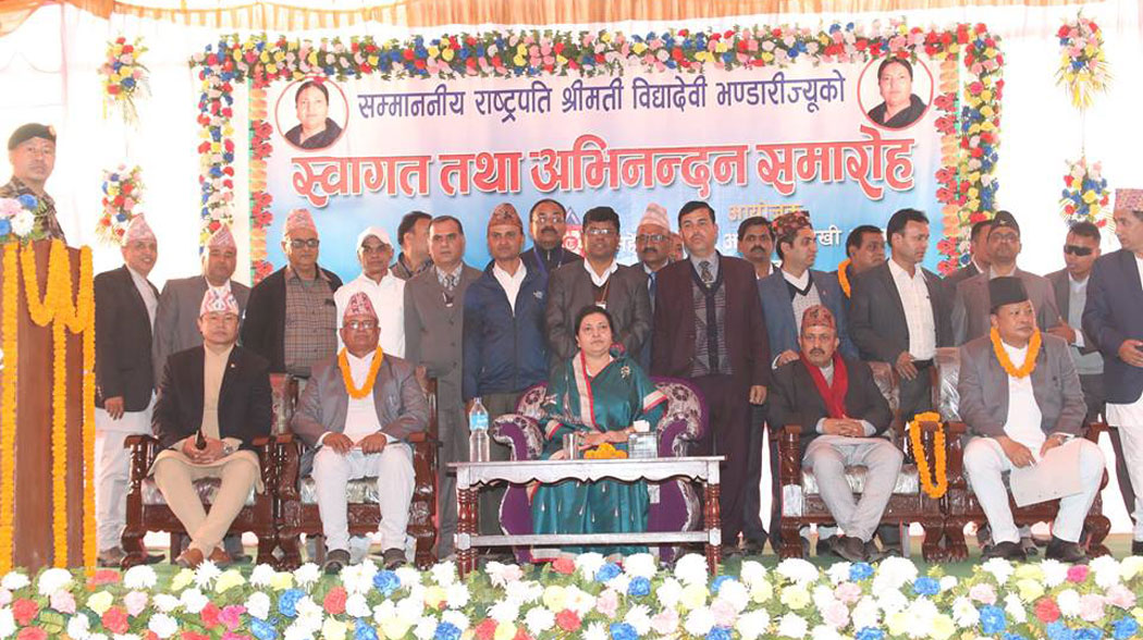 सो अवसरमा क्याम्पस प्रमुख तिमल्सिनाले राष्ट्रपति भण्डारीलाई अभिनन्दनपत्रद्वारा सम्मान गर्नुभयो ।