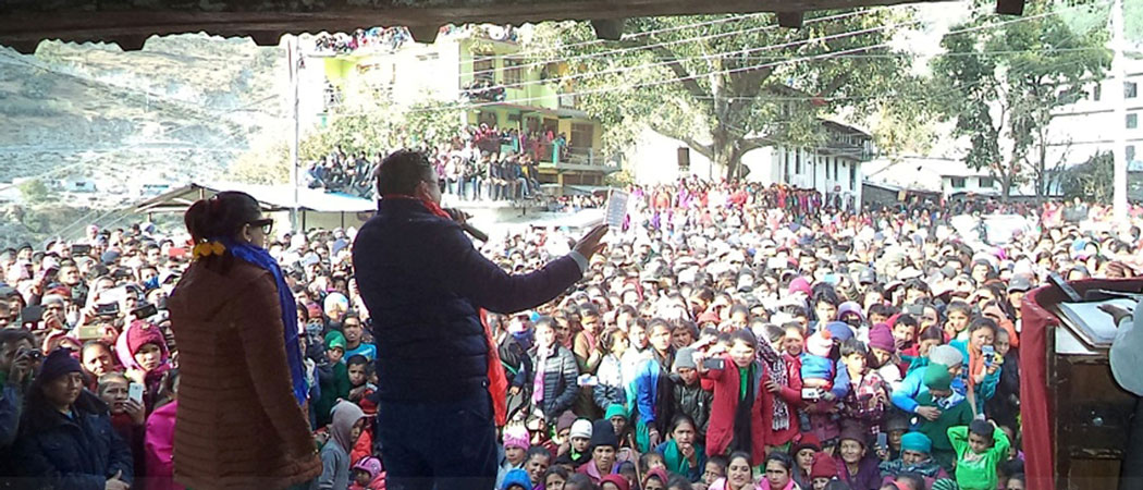डोटी, २२ पुस । सामाजिक अभियन्त्ता तथा हास्य कलाकारद्वय सीताराम कट्टेल (धुर्मुस) र कुञ्जना घिमिरे (सुन्तली) डोटीको पुरानो क्षेत्रीय सदरमुकाम दिपायलमा आउने भनेपछि दिपायल पिपल्ला र कार्यक्रम स्थल उद्योग वाणिज्य सङ्घको चौरमा मानिसको बाक्लो भीडभाड थियो ।