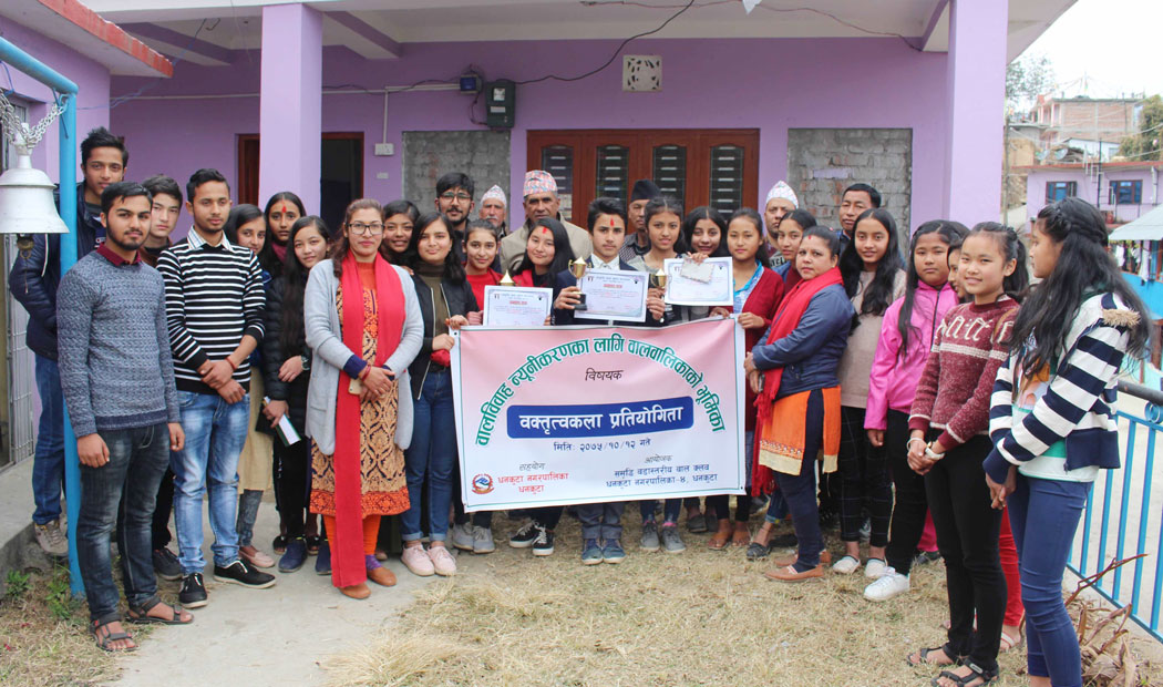 अझै पनि बालविवाह नरोकिएकाले सचेतनामुलक विषयमा वक्तृत्वकला प्रतियोगिता गरिएको सञ्जालका अध्यक्ष निराकार अधिकारीले बताए ।