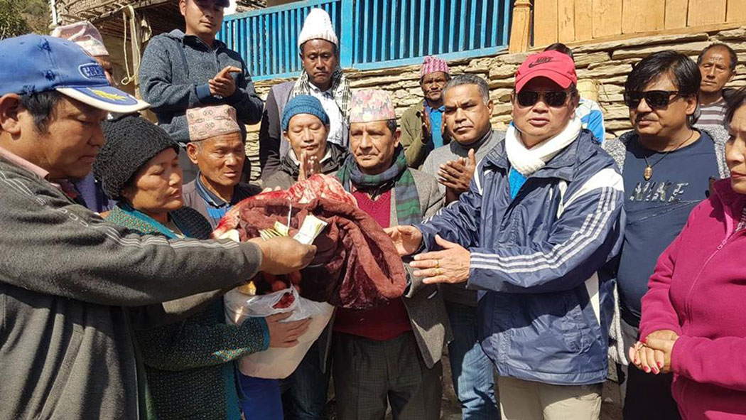 गलेश्वर, १६ माघ । म्याग्दीको मङ्गला गाउँपालिका–४ थर्पुका आगलागीपीडितलाई नेपाली काङ्ग्रेस म्याग्दीले लत्ताकपडासहित रु ५१ हजार सहयोग गरेको छ ।