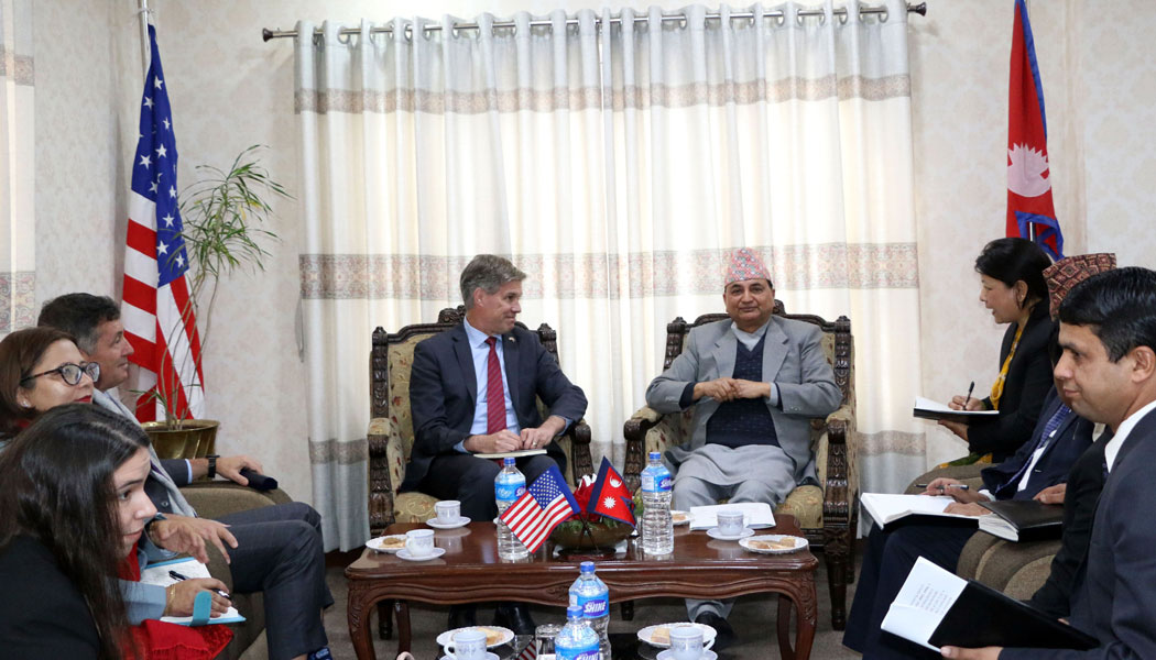 काठमाडौँ, १३ फागुन । उपप्रधानमन्त्री एवं रक्षामन्त्री ईश्वर पोखरेलसँग नेपाल भ्रमणमा रहनुभएका संयुक्त राज्य अमेरिकाका रक्षा राज्यमन्त्री जोसेफ फेल्टरले आज शिष्टाचार भेट गरी नेपालको विकास र समृद्धिका लागि सहयोगको निरन्तरता हुने विश्वास व्यक्त गर्नुभएको छ ।