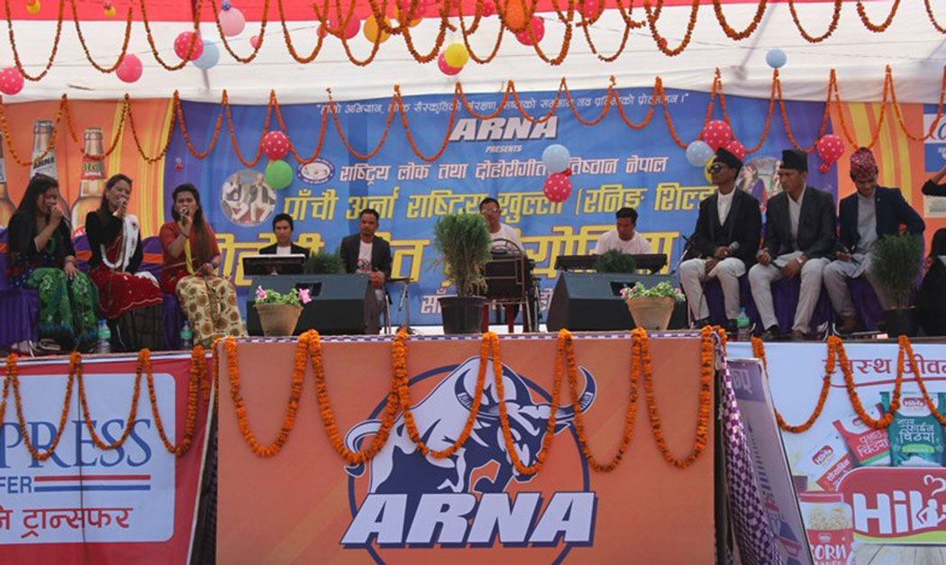 रुपन्देही, २२ फागुन ।“मौका मिल्दा गीत गाउन झरौँ है, गीत सङ्गीतको जगेर्ना गरौँ है” बुटवलमा आयोजित राष्ट्रिय खुला दोहोरी गीत प्रतियोगिता एवं सांस्कृतिक महोत्सवअन्तर्गत मङ्गलबार तेस्रो दिनमा अर्घाखाँचीकी विमला थापा र लमजुङकी प्रिती आलेबीचको दोहोरी लोक सङ्गीतको जगेर्ना गर्नेमा केन्द्रित रह्यो । विमलाको टुक्का सकिएलगत्तै प्रितीले “नलागोस् है दोहोरीलाई खत, सङ्गीत मेरो हो नि त रगत” भनेर जवाफ दिइन् ।