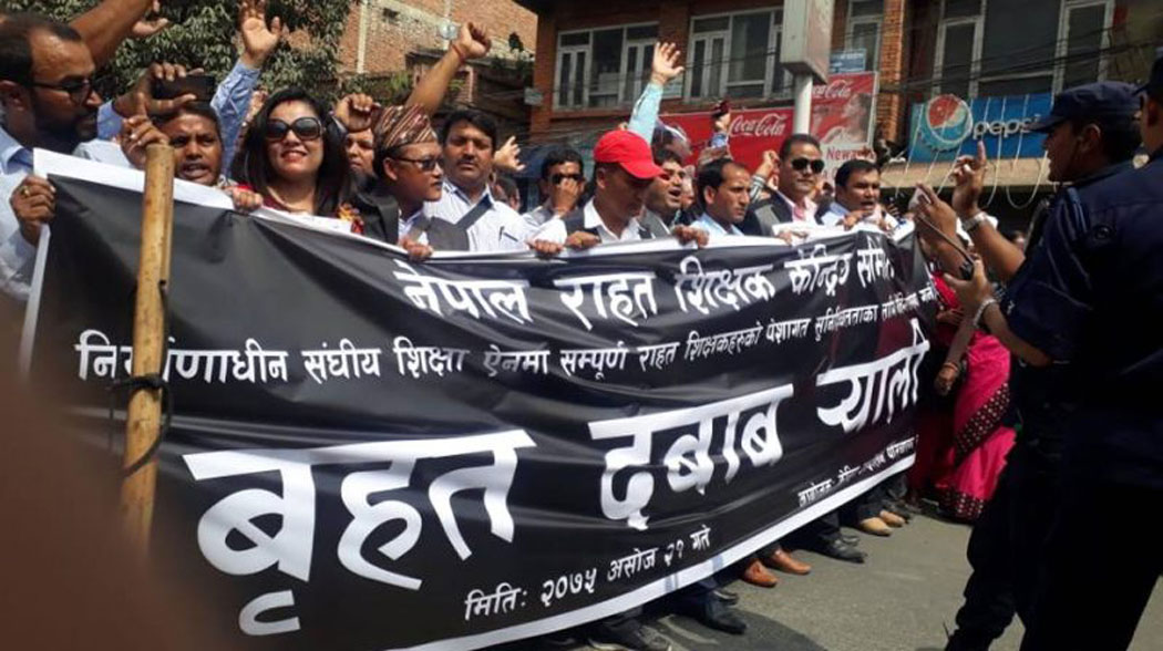 ती शिक्षकले यही फागुन २१ गते आन्दोलनका क्रममा सामुदायिक विद्यालयको पठनपाठन प्रभावित हुने गरी विद्यालय बन्दको घोषणासमेत गरेका थिए ।