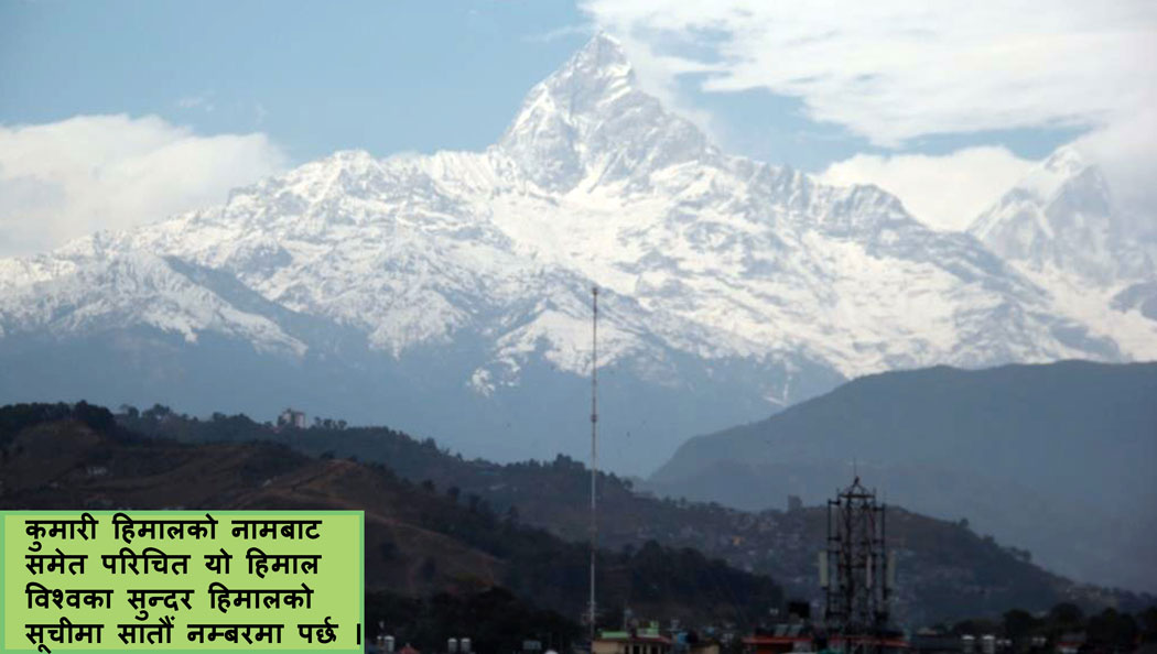 कुमारी हिमालको नामबाट समेत परिचित यो हिमाल विश्वका सुन्दर हिमालको सूचीमा सातौं नम्बरमा पर्छ । पछिल्लो समय यस हिमालको आरोहण खोलिनु पर्छ वा पर्दैन भन्ने विषयले बहस निम्त्याएको छ । छ हजार ९९३ मिटरको उचाइबाट पोखरामा आउनेहरुलाई स्वागत गरे झै आभाष दिलाउने यस हिमाललाई पर्यटनविद् झलक थापा ‘कुमारी’ विशेषण जोड्न रुचाउनुहुन्छ ।