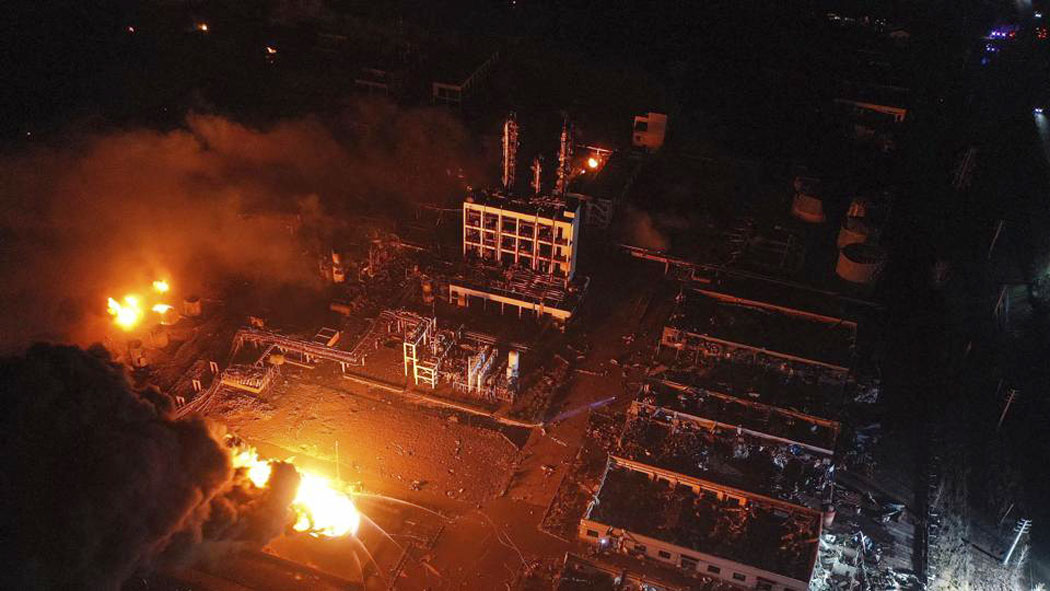 बिस्फोटपछि कारखानामा आगो फैलिएको थियो । यो कारखानामा मल ( फर्टिलाइजर ) बनाउने काम हुन्छ ।चीनको भूकम्प प्रशासनले बिस्फोटका बेला २.२ तीब्रताको भूकम्प आएको जनाएको छ ।