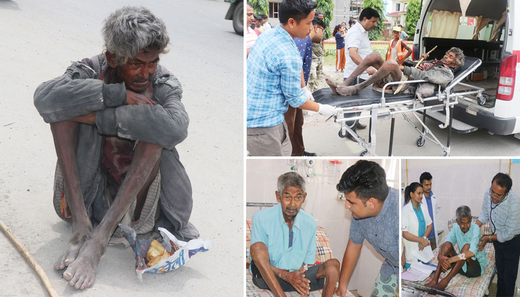 बिराटनगरको व्यस्त सडकको रुपमा चिनिने कञ्चनबारीमा धेरै दिनदेखि अलपत्र अवस्थामा रहेका बेसहारा बृद्धको कष्टपूर्ण र कारुणिक दैनिकी सडकमा हिड्ने जोकोहिका लागि रमिता मात्र बन्यो । तर, त्यहि सडकमा हिड्दा देखिएको बृद्धको कारुणिक दृष्य डा.सुनिल शर्माले टुलुटुलु हेरेर बस्न सकेनन् । नोबेल शिक्षण अस्पताल सञ्चालकसमेत रहेका समाजसेवी डा.शर्माले बृद्धलाई सडकबाट उद्धार गरेका छन् ।