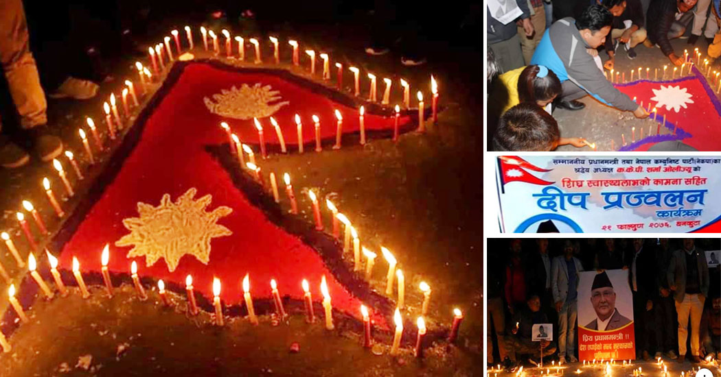 मदनचौकमा भएको दीप प्रज्वलनमा बिद्यार्थी र युवा संघका पदाधिकारीसहित पार्टीका नेता, कार्यकर्ता तथा सर्वसाधरणहरु सहभागि थिए । सडकमा राष्ट्रिय झण्डाको आकृति बनाएर प्रधानमन्त्री ओलीको स्वास्थ्य लाभको कामना गर्दै दीप प्रज्वलन गरिएको हो ।