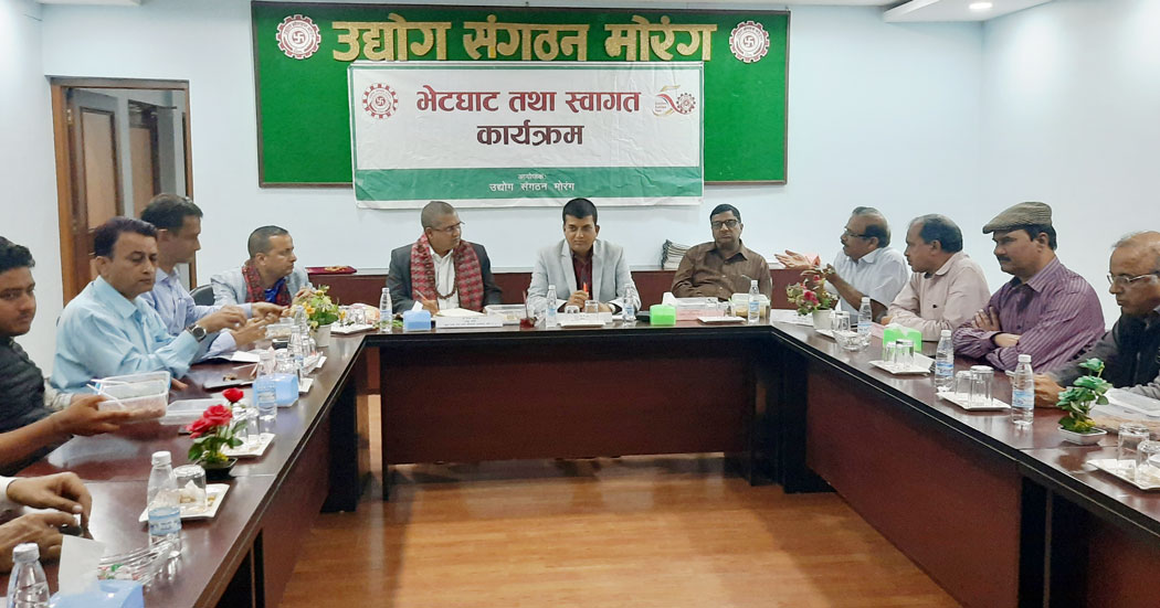 बिराटनगर । प्रदेश नं. १ को मुख्य मन्त्री तथा मन्त्री परिषदको कार्यालयमा सरुवा भएर आएका प्रमुख सचिव दिनेश भट्टराईसँग उद्योगीहरुले भेटघाट गरेका छन् । उद्योग मन्त्रालयबाट सरुवा भएर आएका प्रमुख सचिव भट्टराईलाई स्वागत गर्दै उद्योग संगठन मोरङले भेटघाट कार्यक्रम गरेको हो ।