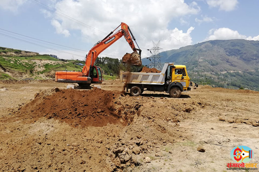 लकडाउनमा निर्माण : धनकुटाको छथर जोरपाटी गाउँपालिका–६ सिधुवा बजार स्थित खेल मैदान सम्याइदै । लकडाउनकै समयमा पनि अहिले बिकास निर्माणका काम सुरु हुँन थालेका छन् । तस्वीर : नबनीत खड्का