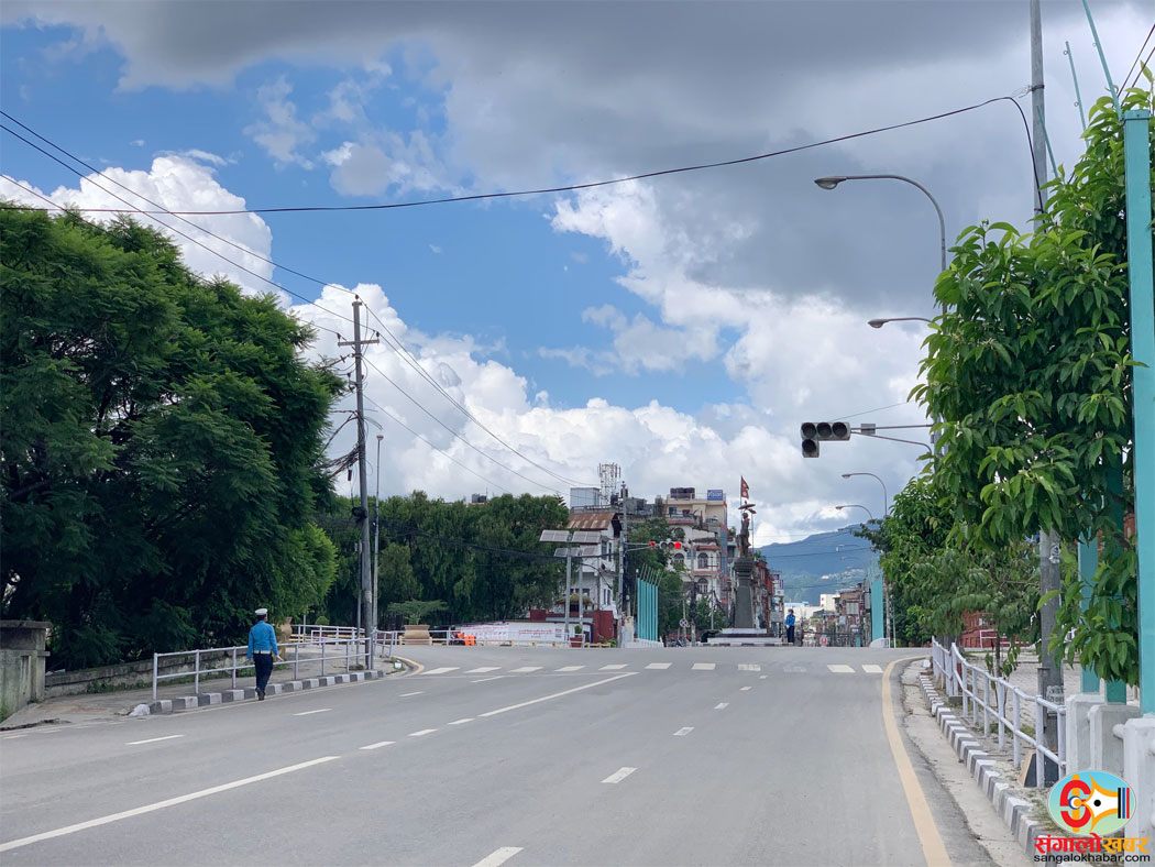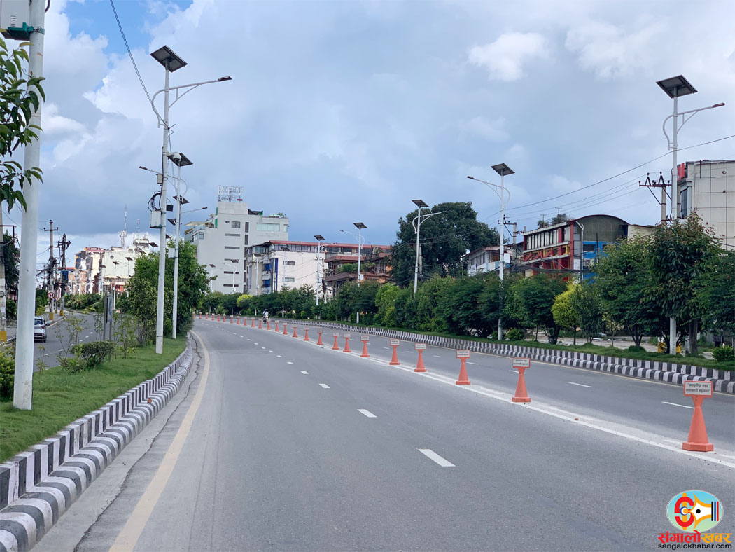 सडकमा अत्यावश्यक प्रयोजनका बाहेक अन्य सवारी साधन सञ्चालनमा रोक लगाईएको छ । लकडाउनलाई कडाई गर्न राजधानीका सडकमा सुरक्षा तैनाथी बढाईएको थियो ।