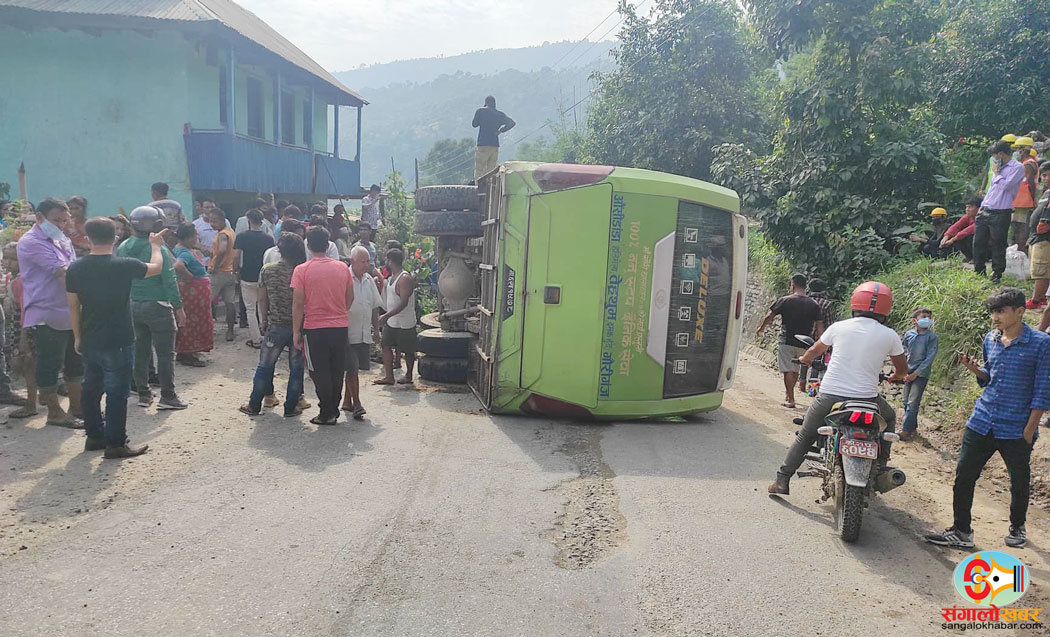 बसमा ८ जना यात्रु सवार थिए । एक घाईते बाहेक बाँकी सकुशल छन् । ओरालो बाटोमा ब्रेक फेल भई अनियन्त्रित भएर बस पल्टिएको अनुमान गरिएको धनकुटाका ट्राफिक प्रहरी दिपक खड्काले बताए ।