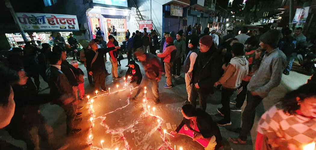 धनकुटा । प्रतिनिधिसभा विघटन गर्ने निर्णय सर्वोच्च अदालतले बदर गरेको खुशीयालीमा आज साँझ धनकुटामा दीप प्रज्वलन गरिएको छ । धनकुटाको मदनचौकमा दीपावली गरेर सर्वोच्च अदालतको फैसलालाई स्वागत गरिएको हो । नेकपाको प्रचण्ड–नेपाल समूहका नेता कार्यकर्ताहरुसहित संसद् पुर्नस्थापनाको माग गर्दै आएकाहरुले मदनचौकमा नेपालको नक्सा बनाइ दीप प्रज्वलन गरेर खुशीयाली मनाइएको नेकपा सचिव ऋषिराम ढुंगानाले जानकारी दिए ।