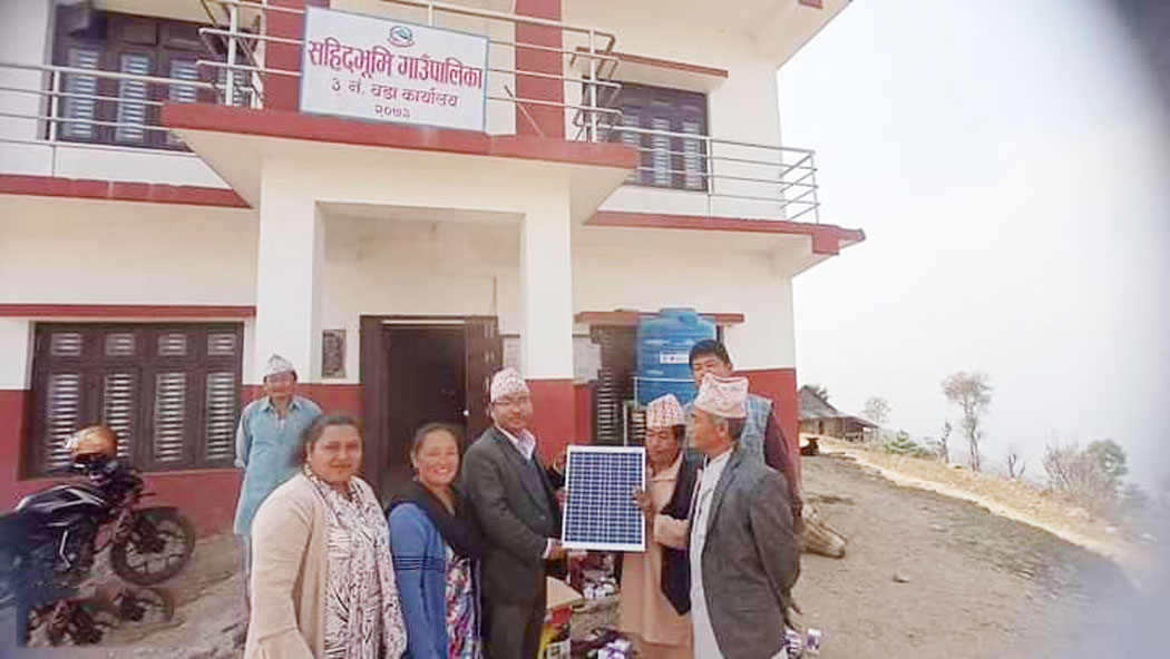 धनकुटा । धनकुटाको सहिदभूमि गाउँपालिकाले विद्युतको महसुल बुझाउन नसक्ने अति विपन्न परिवारलाई सोलार सिस्टम, रकेट चुलो र वायो ग्यास वितरण गर्न थालेको छ । सोलार सिस्टम वितरणको पहिलो चरणको कार्यक्रम वडा नं ३ बाट सुरु भएको हो ।