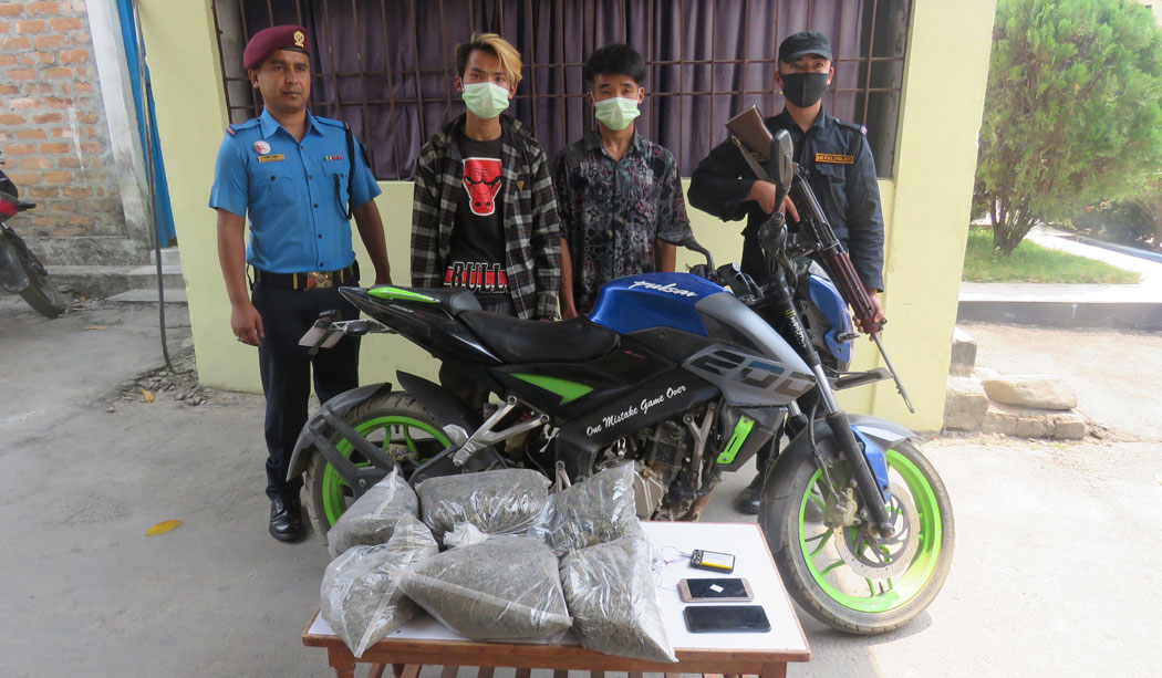 प्रहरीका अनुसार उनीहरुले बोकेको झोलाबाट २ किलो गाँजा बरामद भएको छ । गाँजा बरामद भएपछि दुवै जनालाई पक्राउ गरेर मोटरसाइकलसमेत नियन्त्रणमा लिइएको प्रहरीले जनाएको छ । उनीहरुविरुद्ध प्रहरीले अदालतमा लागुऔषध मुद्दा दर्ता गरेर कारबाही प्रकृया अघि बढाएको छ ।