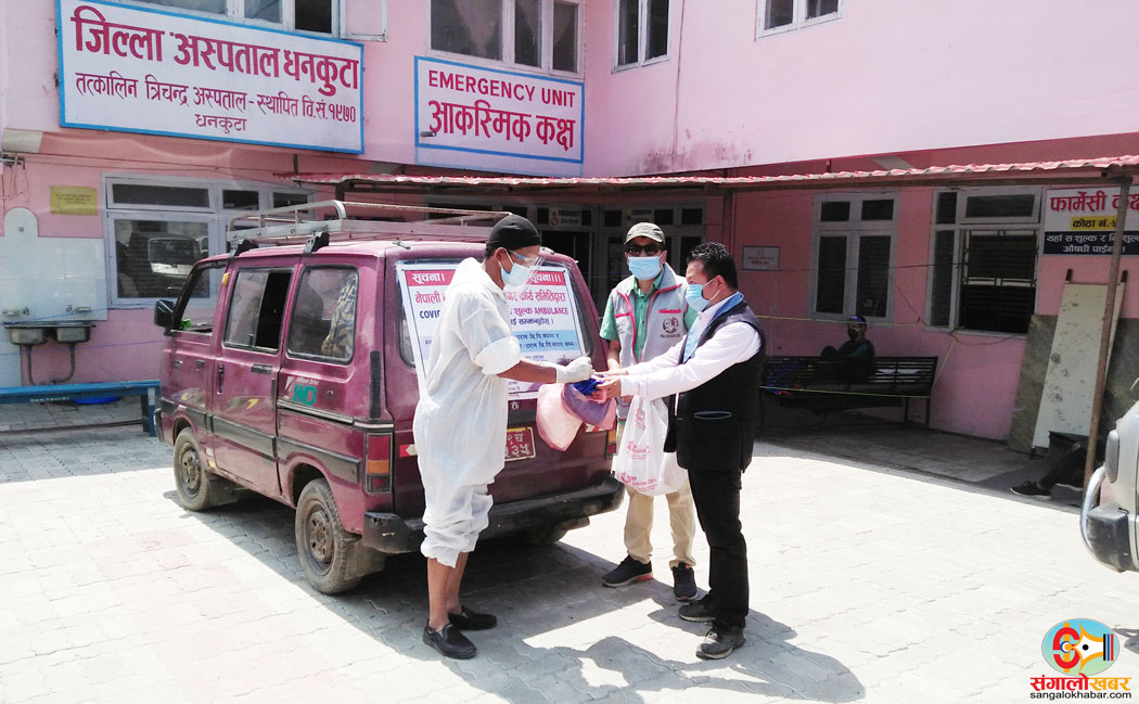 पाख्रीवासबाट विरामी लिएर जिल्ला अस्पताल आएका बेला आइतवार दिउँसो भ्यान चालकलाई सचिव राईले व्यक्तिगत रुपमा दुई वटा पीपीई सेट, फेस सिल्ड, मास्क, चस्मा र सेनिटाईजर प्रदान गरेका हुन् । महामारीका बेला विरामी वोक्दा कोरोना संक्रमणको जोखिम हुँने भएकाले स्वास्थ्य सावधानी अपनाउँन चालकलाई व्यक्तिगत रुपमा सामाग्री प्रदान गरेको सचिव राईले जानकारी दिए ।