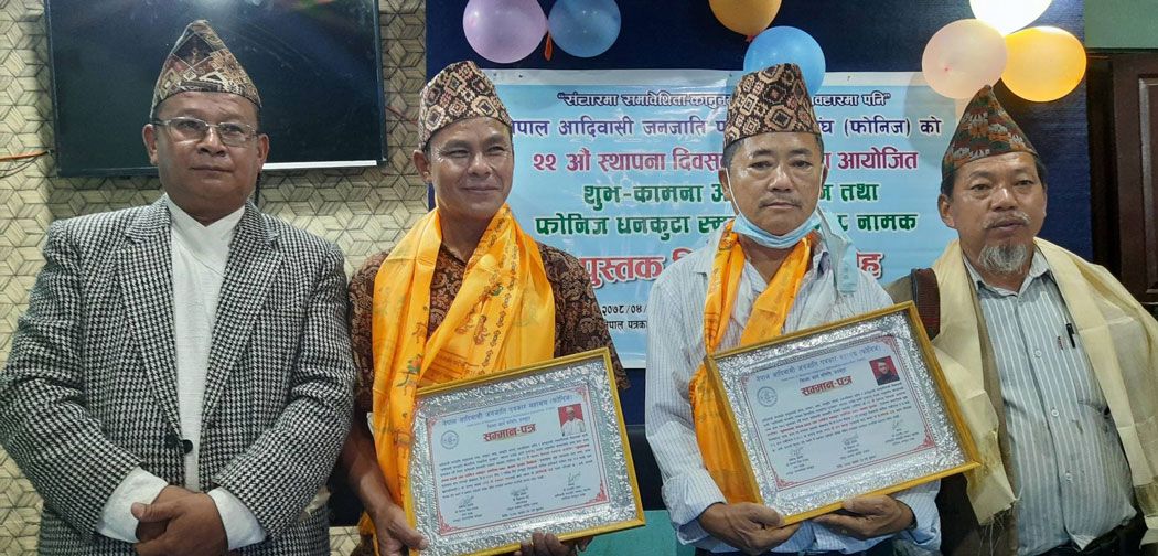 यसैबीच फोनिजले ‘आदिवासी जनजाति क्रियाशिल पत्रकारिता पुरस्कार’ स्थापना गर्न सहयोग गरेवापत आदिवासी जनजाति महासंघ जिल्ला समन्वय परिषद धनकुटाका निवर्तमान अध्यक्ष इन्द्र सारु मगर र समन्वय परिषद सदस्य ज्ञानवहादुर गुरुङलाई सम्मान गरेको छ । दुवै जनालाई सम्मान पत्र, खादा र टोपी लगाइदिएर सम्मानित गरिएको हो ।