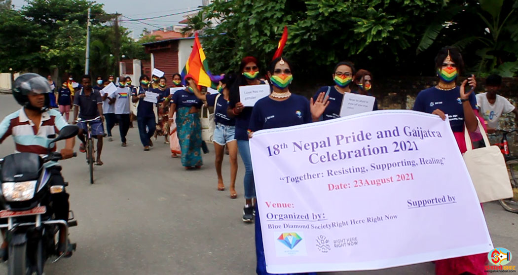 विराटनगर । सामाजिक उपेक्षा सहन गर्दै आएका तेस्रोलिङ्गीहरुले पूर्ण अधिकार सुनिश्चितताकोे माग गर्दै र्याली निकालेका छन् । एक वर्षयता विभिन्न कारणले ज्यान गुमाएका साथीहरुको सम्झनामा सोमबार गाईजात्राको अवसर पारेर उनीहरुले र्याली निकालेका हुन् ।