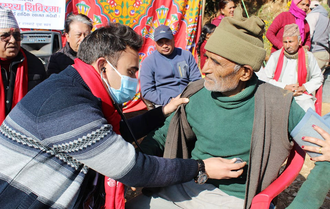 काठमाडौं । काभ्रेको पनौती नगरपालिका–६ रातमाटेमा आइतबार निःशुल्क स्वास्थ्य शिविर सञ्चालन गरिएको छ । काठमाडौंको सिनामंगलस्थित काठमाडौं मेडिकल कलेज, रातमाटे युवा क्लब, जनहित एकता समाज र सामूदायिक बचत तथा ऋण सहकारी स्ंस्था लिमिटेहको सहकार्यमा एक दिने शिविर सञ्चालन गरिएको हो ।