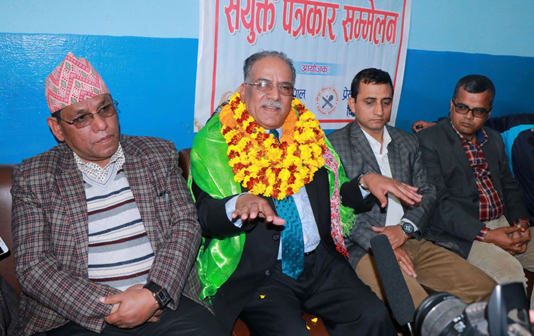 भरतपुरमा आज प्रेस चौतारी नेपाल र प्रेस सेन्टरले आयोजना गरेको संयुक्त पत्रकार सम्मेलनमा बोल्दै अध्यक्ष दाहालले सैद्धान्तिक रुपमा नेपाल कम्युनिष्ट पार्टी भइसकेको भन्दै कानूनी रुपमा निर्वाचन आयोगमा दर्ता गरेपछि भन्न मिल्ने उल्लेख गर्नुभयो ।